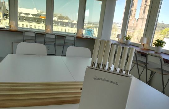 Details zum Angebot bei Beschreibung:Das PRIME - wohnen in den oberen Etagen, inmitten der Stadt, dennoch sehr ruhig. Modern, hell, zweckmäßig puristisch & privat. Die Gemeinschaftsküche lädt zum gemeinsamen Frühstücken und Kochen ein. Kostenfreies W-LAN, Sattelit TV, kostenfrei: SENSEO Kaffee, Teesorten, Bio Müsli & Bio Milch. Alles Nichtraucherzimmer. Dachterrasse mit Sonnenuntergangspanorama, vollausgestattete Gemeinschaftsküche mit Induktionsherden, Backofen & Microwelle, Check-in mit Mobil Textmessage (SMS, bitte Mobilrufnummer angeben). Glasbadezimmer mit großen Duschen. Alle Zimmer zur Privatnutzung. Wir nennen uns Hostel weil soziale Bereiche vorhanden sind und eingeschränkter Service besteht. Zimmerreinigung & Handtücherwechsel alle drei Tage oder auf Wunsch. Die Zimmerwände sind komplett mit weissem Glas belegt. Das Ambiente ist somit schön, hell und sauber. Wir bieten Tiefgaragenstellplätze im Haus und Sie gelangen per Aufzug bequem in die von uns betriebenen oberen Etagen des Hauses. Willkommen!